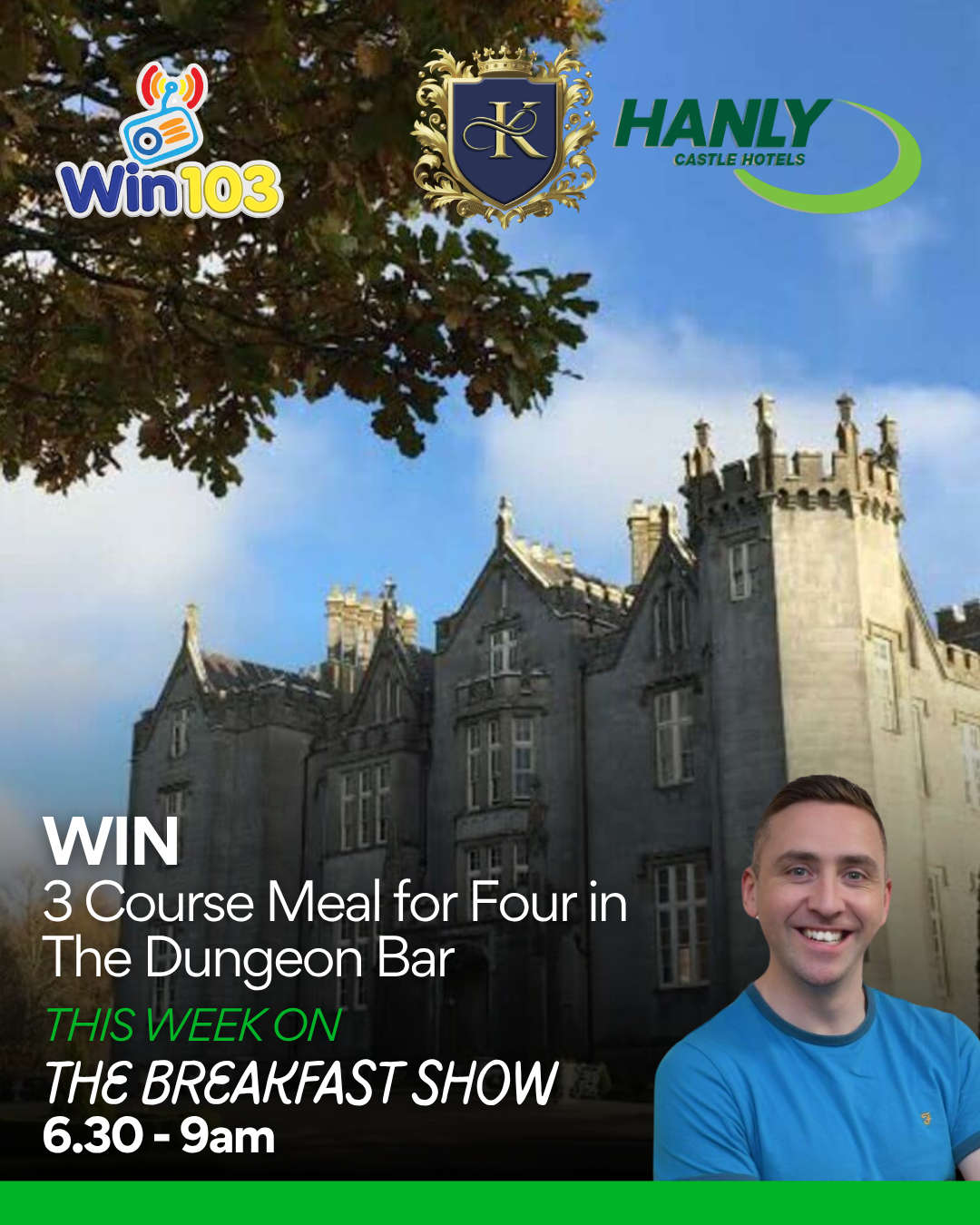 WIN a 3 course meal for four in the unique Dungeon Bar at Kinnitty CastleWin a 3 course meal for four in the unique Dungeon Bar at Kinnitty Castle, thanks to Hanly Castle Hotels.