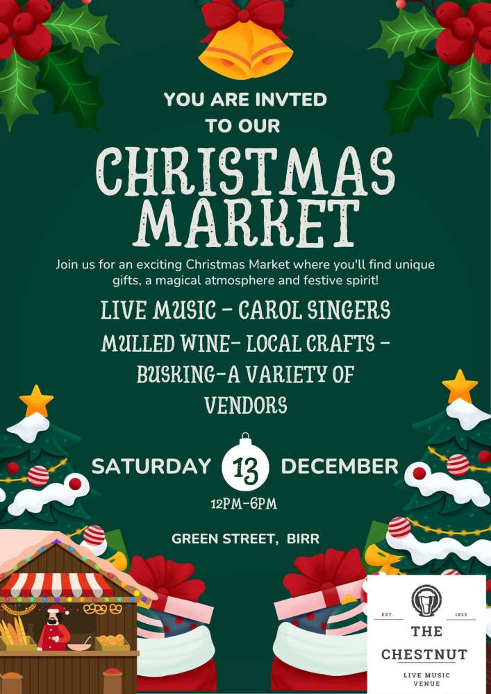 - Birr Christmas Market – Green Street (12pm–6pm)